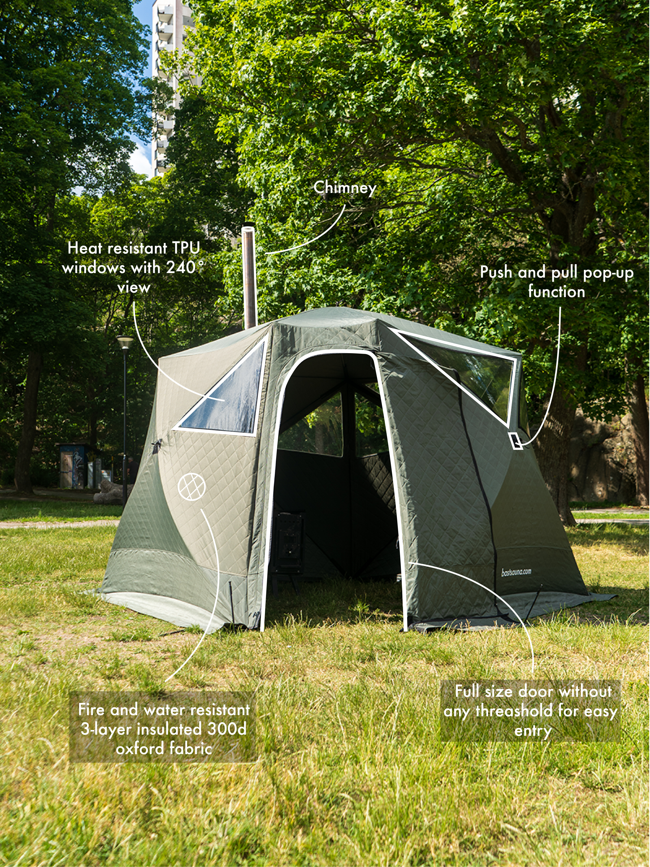The tent is both practical and easy to use. With a couple of quick steps, I can set it up, and it is perfect for both solo relaxation and shared sauna evenings with friends.