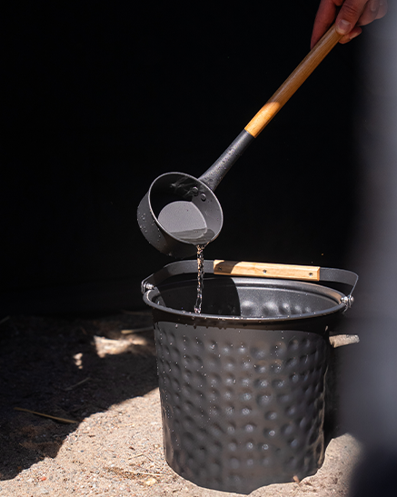 Wir bieten sämtliches traditionelles Saunazubehör – Bänke, Wassertank, Thermometer, Saunasteine, Steinkörbe, Eimer und Kelle – in unseren Paketen an. Darüber hinaus haben wir spezielles Zubehör entwickelt, um die Lebensdauer und das Erlebnis des Saunazelts zu maximieren.